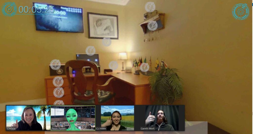The best thing about our online escape rooms is that each team member can input the solutions to the puzzles themselves (rather than having to wait for the Gamemasters/Host or rely on the lead team member) and see things being unlocked or opened as you solve the puzzles.